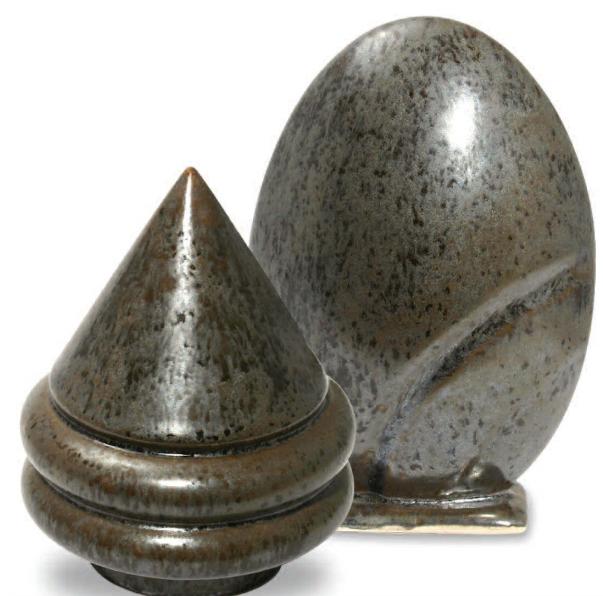 Напівматова коричнева глазур з глянцевими вкрапленнями. Сріблясто-коричнева з ефектом блиску при середній товщині нанесення.